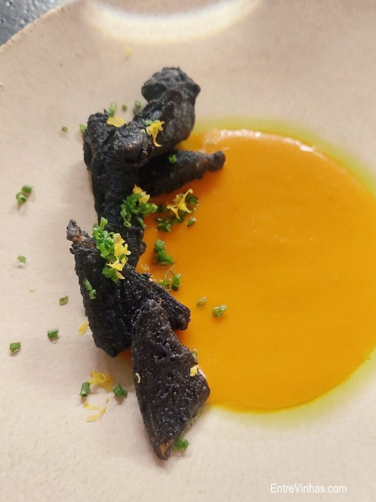 Do menu degustação que nos foi servido destaco pratos como a lula em tempura de tinta de choco, a molha (carne de vaca) com couves ou mesmo a tosta de queijo com compota.
