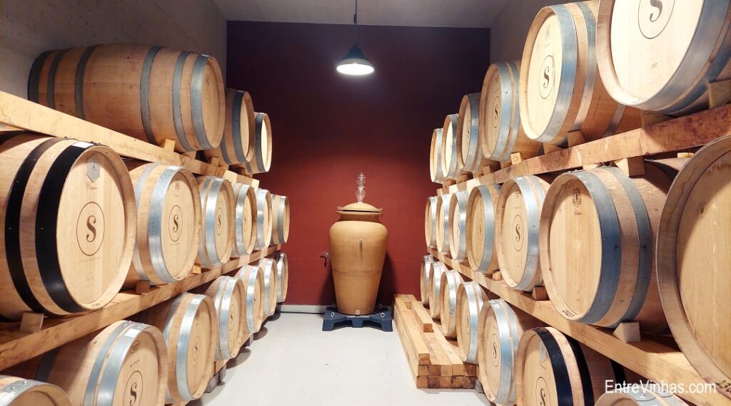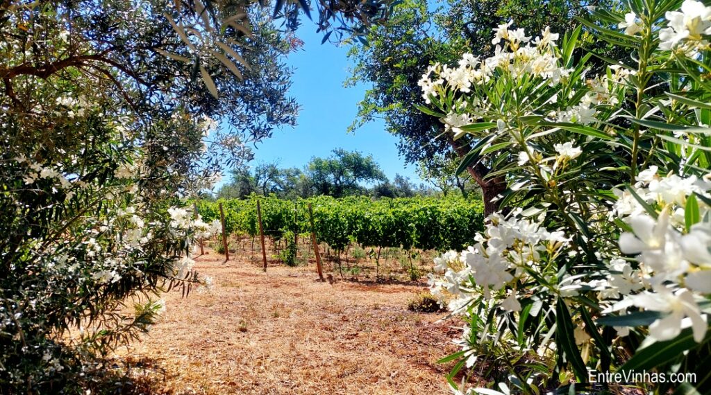 Quanto às vinhas, estas nasceram e cresceram em harmonia com todas as outras frutas. Nos 3,5 hectares encontram-se maioritariamente castas tintas – Touriga Nacional, Tinta Caiada, Syrah e Aragonês – mas também brancas como Antão Vaz, Arinto e Petite Ardine, uma das castas suíças mais apreciadas e por isso trazidas directamente de lá, para o nosso Algarve.